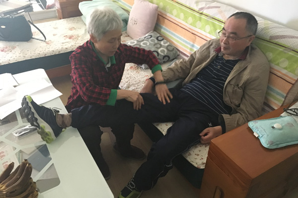 为了防止肌肉萎缩,吴正霞每天都要帮丈夫做按摩、艾灸,由于失去了语言能力,再加上病痛的折磨,丈夫的性格变得暴躁,多次向吴正霞发脾气,拳头不时打在她的身上。面对丈夫的暴躁和不知什么时候爆发的脾气,她总是柔声细语的劝慰。
