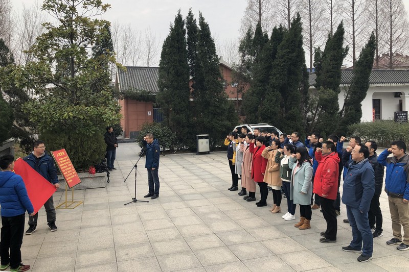 上午8点,全体党员来到淮南市寿县小甸镇,小甸镇是我省第一个农村党组织“中共小甸集特别支部”的成立地。党员同志们一面认真听讲解员为我们诉说当年的故事,一面认真的观看当时留下的珍贵影像。同志们逐渐的从刚来时的兴奋,转为内心的沉思,仿佛那个峥嵘岁月的年代,距离自己很近。参观完纪念馆,党员同志来到革命英雄纪念碑前重温入党誓词,献上鲜花,鞠躬,缓步围绕纪念碑瞻仰致敬。