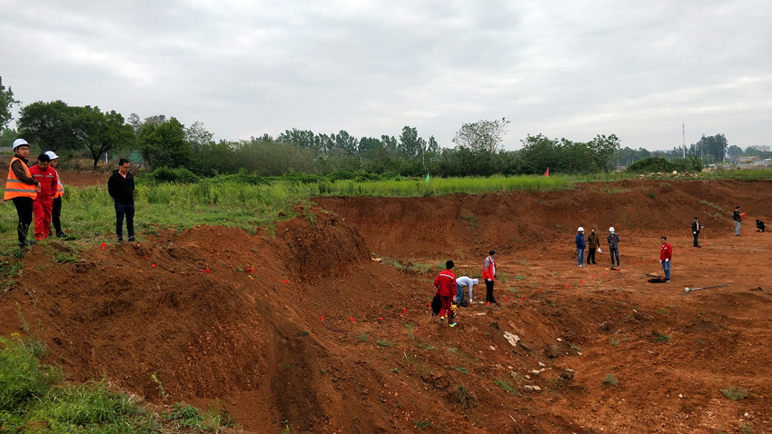 因受疫情影响,该工程工期延误,当前正在加紧推进复工复产。但在前期的工程勘察中,多处钻探结果显示规划建设区存在地下溶洞,在未全面查明地下溶洞的分布特征之前,复工复产进度迟缓。受校方和施工方委托,物测中心抽调技术人员组建项目组,提前结束五一休假迅速进场,当前已经完成现场踏勘、技术方案设计、贯标和重要实验参数的比选工作。