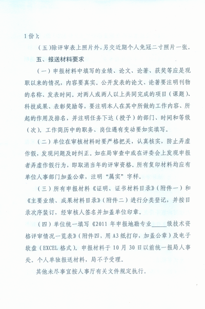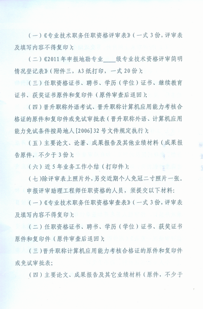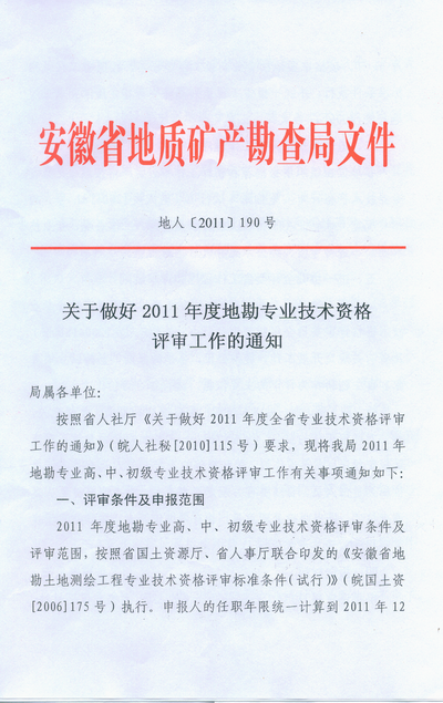 关于做好2011年度地勘专业技术资格评审工作的通知