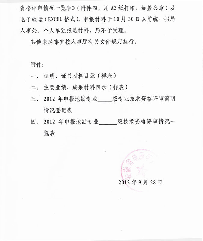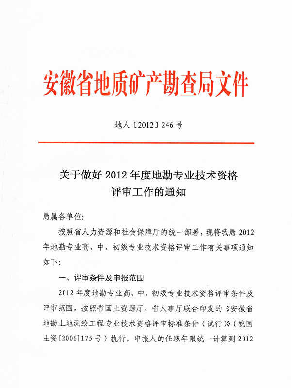 关于做好2012年度地勘专业技术资格评审工作的通知