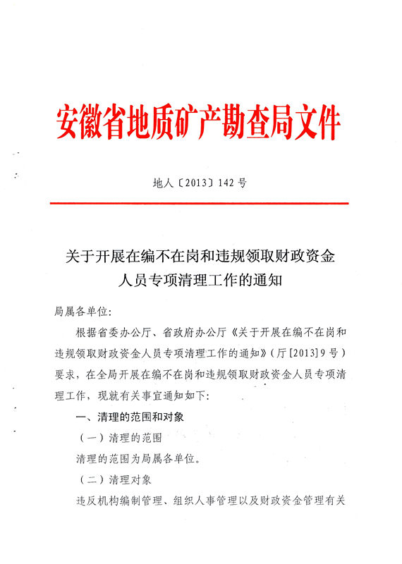 关于开展在编不在岗和违规领取财政资金人员专项清理工作的通知