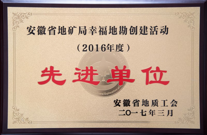 3月10日,经省地质工会研究决定,授予我院2016年度“安徽省地矿局幸福地勘创建活动先进单位”荣誉称号。