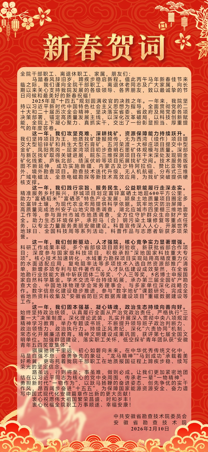 安徽省勘查技术院2026年1月院领导接访公示