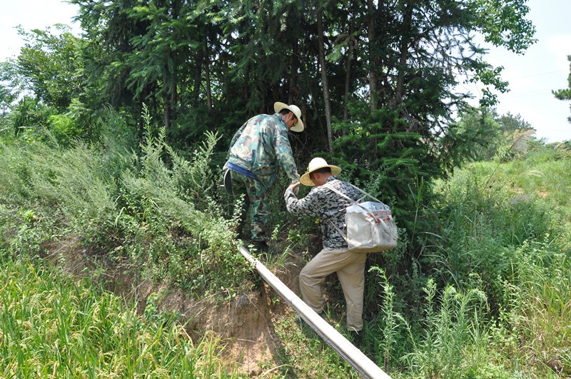 工区环境:丘陵连绵、植被发育、水田河沟众多,几十年不遇的高温湿热天气,蚊虫叮咬、毒蛇出没,施工难度大。