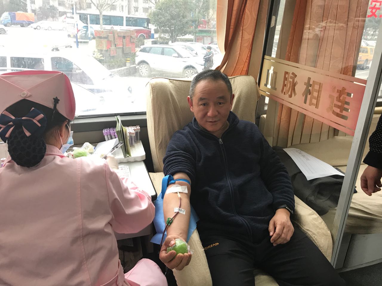 新春伊始,安徽省城合肥的用血量急剧增加,为缓解医院用血压力,我院职工主动要求参加义务献血。图为我院职工正在进行义务献血。