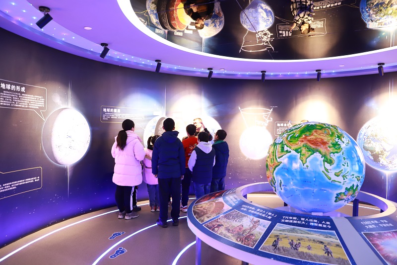 在科普试验展厅,讲解员采用互动的方式,与“小学者们”共同探讨地球的起源。讲解员结合生活中的所见所闻,讲解岩矿石知识,引导“小学者们”去思考,去发现生活中的地球科学知识。“小学者们”学会认识地质灾害,学习逃生技能,面对各种地质灾害,深深感受到在开发利用地球的同时也要学会爱护地球。在祖国地形地貌的沙盘前,“小学者们”领略山川景色,激发了强烈的爱国热情。(延海涛/文 杨建/图)