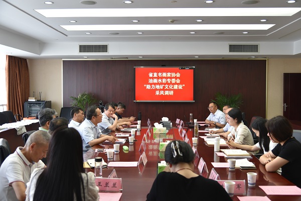 为深入学习贯彻习近平文化思想,推进基层文化建设,助力地矿行业高质量发展,5月24日,省直机关书画家协会副主席兼秘书长何海波等一行11人莅临我院,开展“助力地矿文化建设”调研活动。局机关党委专职副书记、机关纪委书记曹幸,我院党委委员、副院长何家国陪同调研。