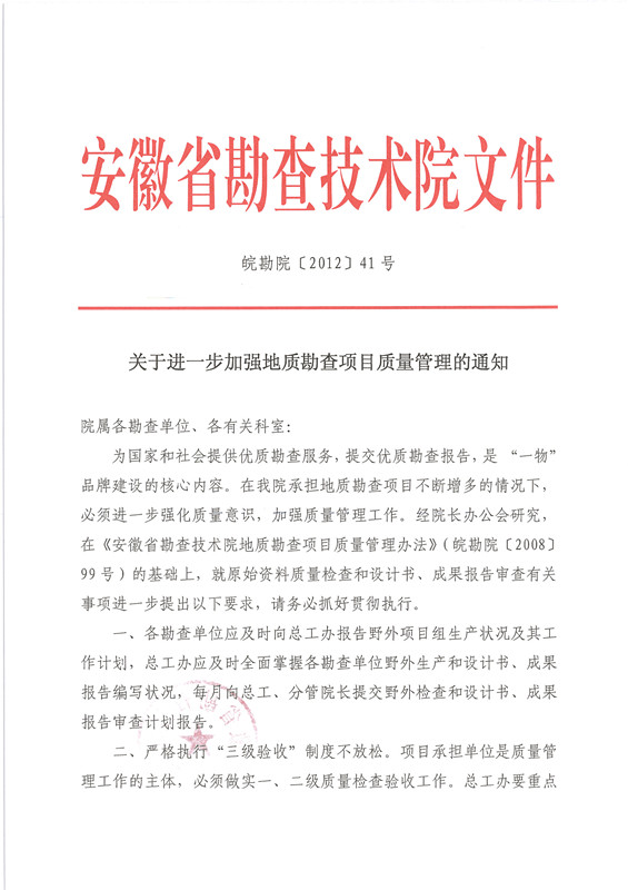 关于进一步加强地质勘查项目质量管理的通知