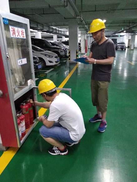 培训结束后,后勤服务中心负责人带队针对各楼层消防器材、配电室、水泵房、楼顶排水口、职工食堂、单身职工宿舍等重点部位进行了全面检查并详细记录。