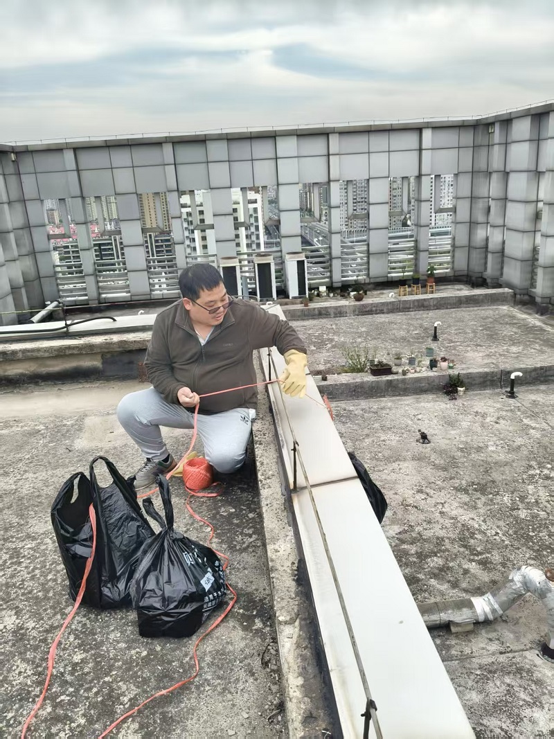 为提前消除暴雨天气可能引发的楼顶积水、渗漏等安全隐患,中心主任提前制定清理方案,明确分工、责任到人,对楼宇楼顶开展“拉网式”排查与清理。