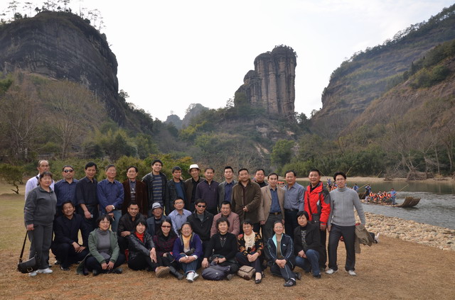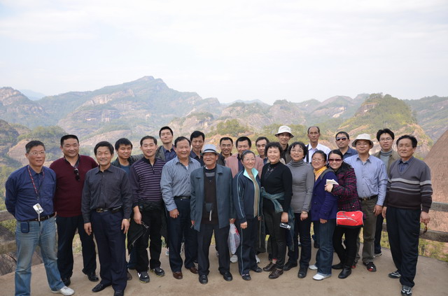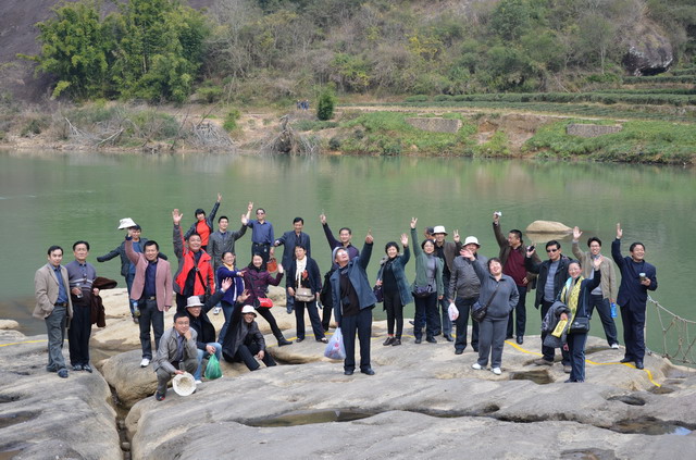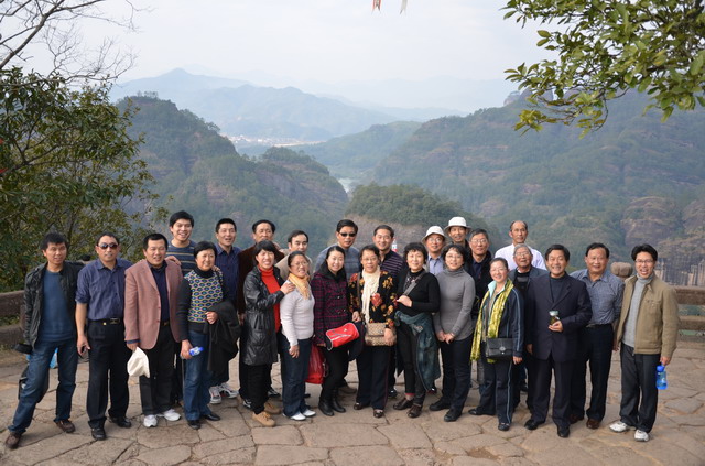 要说在厦门和永定,那参观的地方除了上日光岩要爬一点坡之外,其它基本上是坦途,耗费不了多少体力,但在武夷山就不同了,相对高度215米的天游峰和相对高度197米的虎啸岩,体力不好那只有望峰兴叹了。古稀之年的“老郎”,面对险峻的山峰没有丝毫犹豫和迟疑,凭着自已硬朗的身板,让我们在天游峰和虎啸岩顶上的集体合影中看到了一张开心的老者的笑脸。特别是在登山的过程中,常常会听到年轻的导游在后面喊:老郎—老郎—,您慢点爬—,等等我—。整个行程下来,所有的景点,“老郎”一个没落,让人不得不佩服。