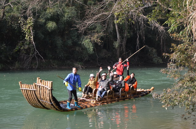 “不坐竹排,等于白来”。在武夷山,漂流是必不可少的。在漂流的起点,导游把我们每六个人分成一组,一个组乘坐一个竹排,选出一个组长,也就是“排长”。 这个“排长”责任“重大”,因为团里“规定”:谁当“排长”谁得负责给艄公付小费。付,就会听到艄公一路的详细讲解,慢慢欣赏两岸风景;不付,那将是急流直下,竹排很快就会到达尽头。我们这个团是当天第一批漂流的,但在行进途中纷纷被“超车”??蠢?,“排长”们是认真履行了职责,让自己的“部下”在九曲溪上既饱了眼福又饱了耳福。