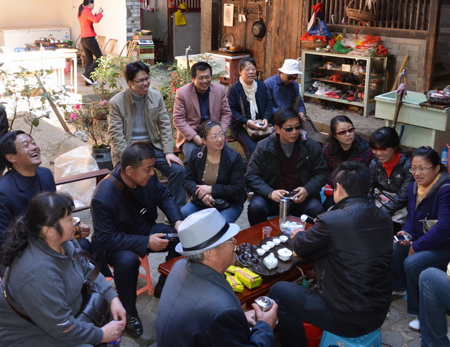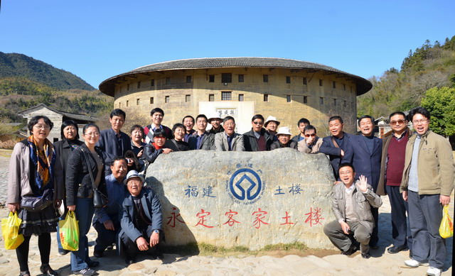 28日,“狼队”经过3个多小时的车程,从厦门到达永定,参观了以土楼王子—振成楼为代表的客家土楼。世界文化遗产让人感受到了人类建筑史上的奇迹,惊叹将近一百年前的客家人高超而精妙的建筑设计,但着实让队员们感到惊喜的是与香港特首曾荫权在振成楼前的不期而遇。特首的出现引起了游客的小小骚动,人们或翘首一睹其真容或举起相机频频按下快门。