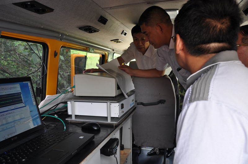 向地震分院干部职工及合作单位的技术人员表示慰问后,院领导登上仪器车,详细询问了设备运行情况。穿密林踏山路,察看了炮点上爆炸器和检波器布设状态,了解了炸药、雷管填装等关键环节的安全保障措施??吹秸鍪┕す萄细癜词偷卣鹂碧焦娣督泄芾砗螅毫斓级源蚴さ卣鹂碧降谝徽匠渎判?。