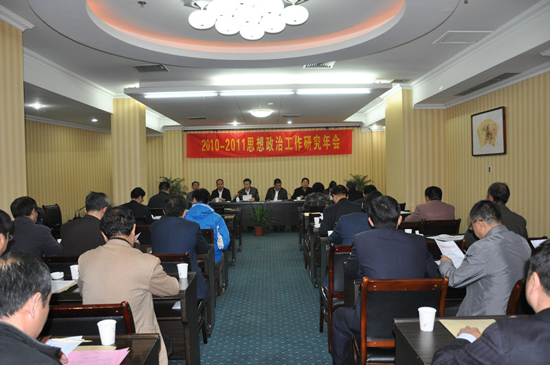 11月18日,院2010-2011思想政治工作研究年会在蚌埠召开,党委书记李晓荣作了题为《坚持正确的思想导向 推动地勘经济跨越发展》的总结报告。院长战双庆主持会议并作会议总结,还就近期工作及明年的重点任务提出了要求。工会主席刘银山以新形势下工会的主要工作任务为主题,为参加会议的基层单位负责人和工会干部作工会知识讲座。
