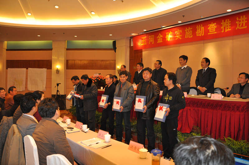潘局长对“五河金矿整装勘查”地质找矿新机制作了系统总结。他指出,五河金矿整装勘查工作采取五河县政府作引导,各类矿权人共同勘查的机制,由省财政出资先期开展公益地质工作,并无偿提供给区内矿权人使用,同时实现区内所有地质资料共享,互惠共赢。勘查阶段中矿权不作变动,风险自担,在矿权范围内取得的成果归矿权人所有。各矿业权人按照思路、设计、进度、标准、质量“五统一”要求同步进行勘查,由勘查主体单位(安徽省勘查技术院)为整装勘查区所有矿业权人提供全方位的技术保障和服务。省地勘基金参与实施,将省内高水平专家团队和完善管理引进整装勘查区,并把省地实所作为勘查保障单位,为快速实现找矿突破提供了保障。这种新思路引起了国土资源部的高度关注。