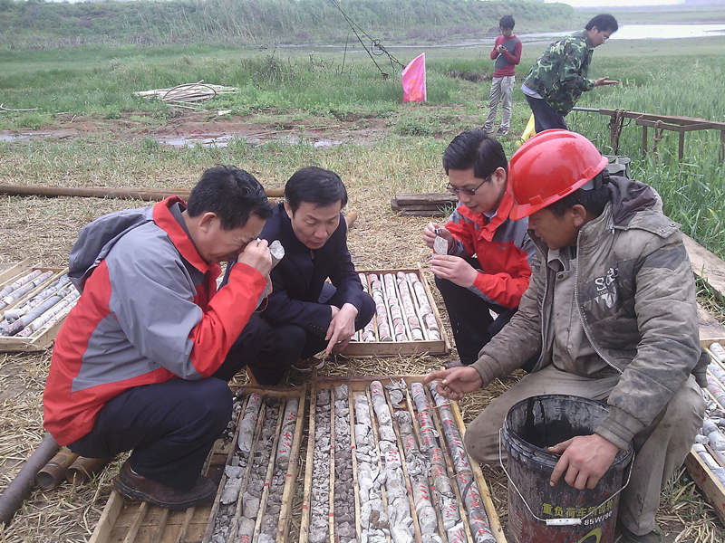 党委书记李晓荣、副院长汪青松在工区查看岩心