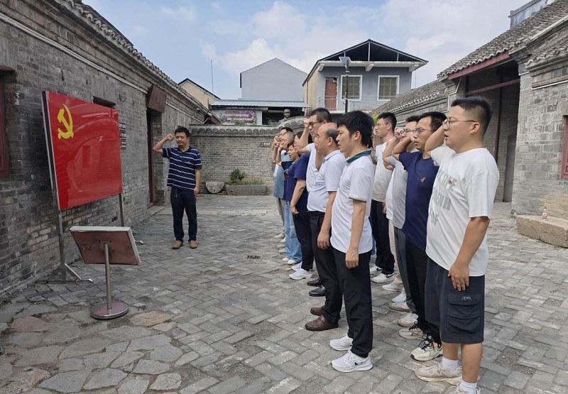 随后,全体同志来到怀远县龙亢镇新四军淮上办事处旧址瞻仰参观,认真聆听讲解员介绍新四军抗战的革命传统和历史故事。一件件珍贵文物和历史图片,生动再现了新四军在淮河两岸英勇抗战的光辉历程。党员们驻足于“淮上英烈墙”前,深切缅怀牺牲的3000余名新四军将士,感慨今日和平的来之不易?;疃?,全体党员重温入党誓词,铭记共产党人的初心与担当。