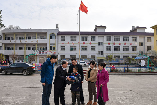 在活动中,何家国一行来到二郎初中、二郎中心学校等,为五位贫困生送去运动服装等,何家国副院长与贫困生进行了交流,询问了他们的学习、生活情况,详细了解家庭成员的身体状况、收入来源,鼓励他们乐观面对生活,勤奋学习、积极向上,将来以优异的成绩、良好的素质回报社会。(郭佳)