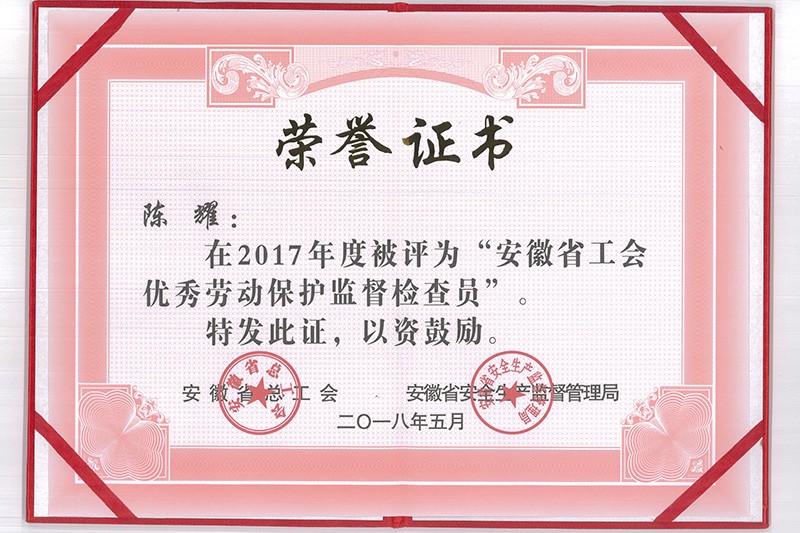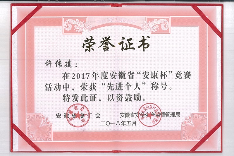6月29日,安徽省地矿局副巡视员王宁川来我院颁发安徽省“安康杯”竞赛表彰证书。院长许传建获2017年度“先进个人”称号。副院长,工会主席陈耀荣获2017年度“安徽省优秀工会劳动保护监督检查员”称号。