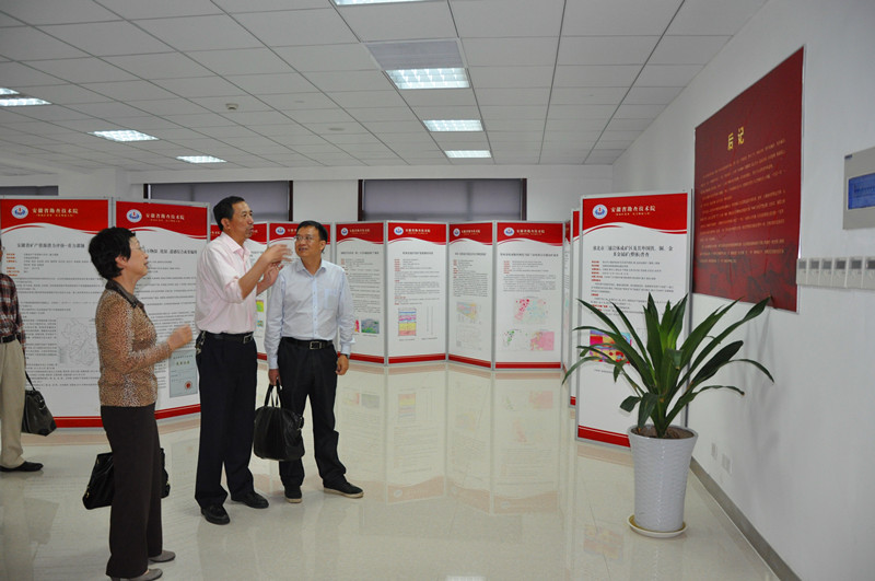 座谈会后,考察团一行参观了省电法勘探重点实验室、我院仪器陈列室和成果展览室。