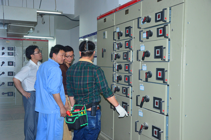 测试开始后,参与人员各尽其责,纪委书记李东海监督了电梯的安全运行过程。后勤服务中心主任褚前卫全程监测水温、油温以及发电机的转速,如果发生异常就及时断电,确保了测试过程的安全。电工郭坤山、甘正卫在配电房对各个系统的断电、供电进行严格细致的操作,保证测试的顺利进行。