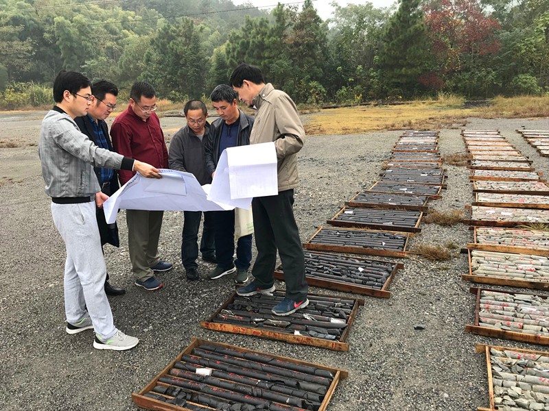 专家组在听取项目负责人洪大军汇报后,对项目实施的地质测量、钻孔施工、编录及样品测试分析等资料进行了仔细检查,并前往岩心库检查钻孔岩心情况,还冒雨对实测地质剖面和地质填图点进行野外检查。经过讨论,专家组一致同意通过此次中间性检查验收,并达成意见为下一步钻孔布设提出方案。