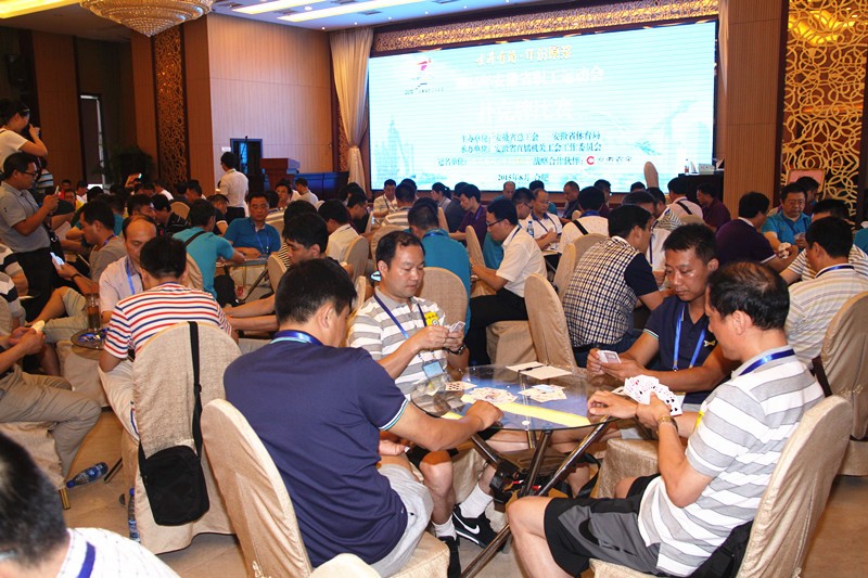 8月1日~2日,安徽省职工运动会首个比赛项目扑克牌比赛决赛在省总工会大厦徽商齐云山庄三楼举行,来自全省16个地市、2个直管县总工会、省直机关工会、省产业工会、省总直管大企业工会共300名参赛选手参加比赛。比赛共分甲、乙两组同时进行,采用瑞士积分制进行7轮比赛,分别取单项前八名。
