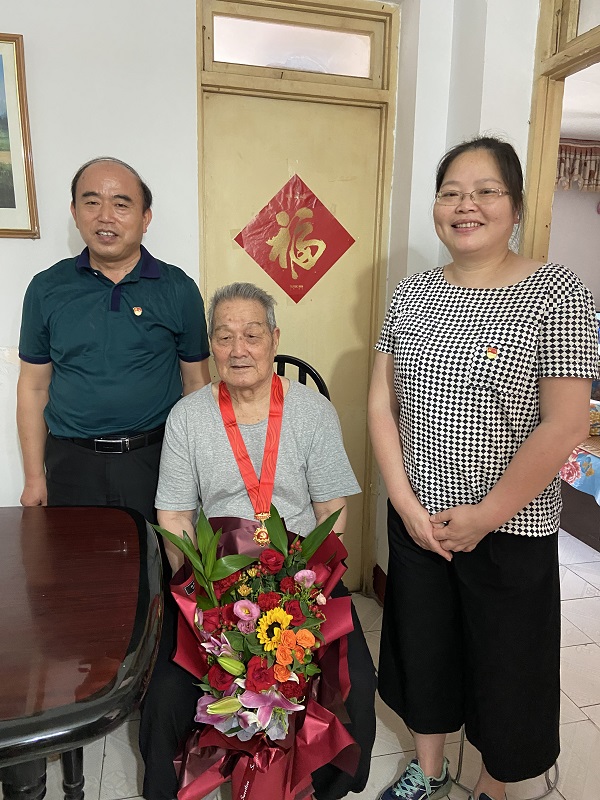 院领导来到离休干部刘杰山、谢仲春两位老同志家中,看到他们身体硬朗、精神矍铄,深感欣慰,并向他们颁发了“光荣在党50年”纪念章,同时致以亲切问候和崇高敬意。两位老党员表示倍感光荣神圣,感谢院党委的关心关怀,要继续为党的事业奉献智慧和力量。