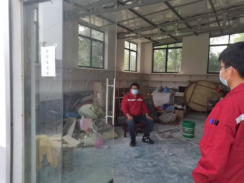 演练开始前,项目负责人组织参加人员进行疫情防控知识宣贯,对演练中的注意事项进行详细交底。本次模拟演练了某项目组在晨检过程中,防疫值班人员查验“一温两码”时,发现某职工行程码带星号的应急处置。值班人员第一时间向现场项目负责人报告,并将其引导至临时留观室,详细了解登记近期行程轨迹。项目负责人迅速启动应急指挥体系和先行处置机制,并核查防疫台账,同时向分院领导和院安??票ǜ?。根据模拟处置流程,项目组安排指定车辆将该名职工送到指定地点进行核酸检测。疫情防控人员对办公场所进行消毒。