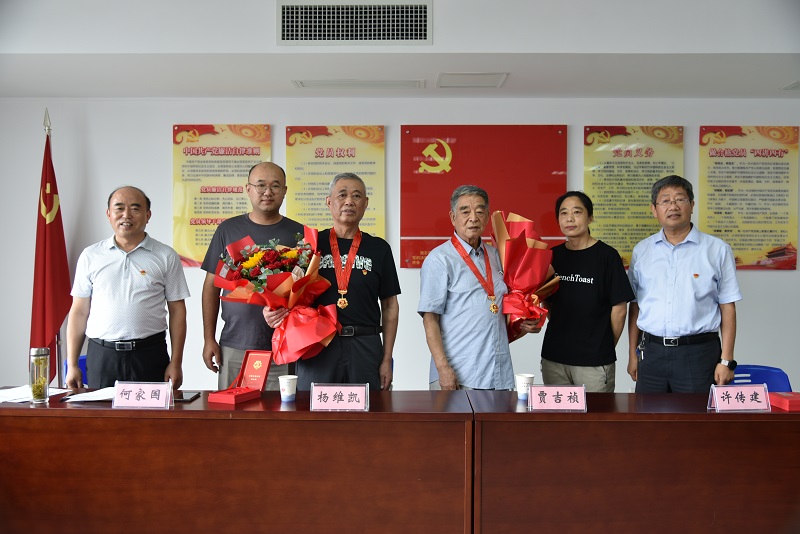 6月28日,院党委举行“光荣在党50年” 纪念章颁发仪式。党委书记、院长许传建出席仪式并讲话,副院长何家国主持,在职党员和离退休党员代表参加。