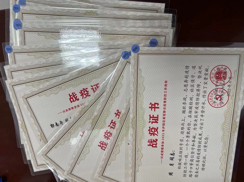 近日,为感谢和肯定我院志愿者在疫情防控期间所做出的突出贡献,庐阳区政府为我院坚守一线参与疫情防控的27名志愿者颁发战疫证书。