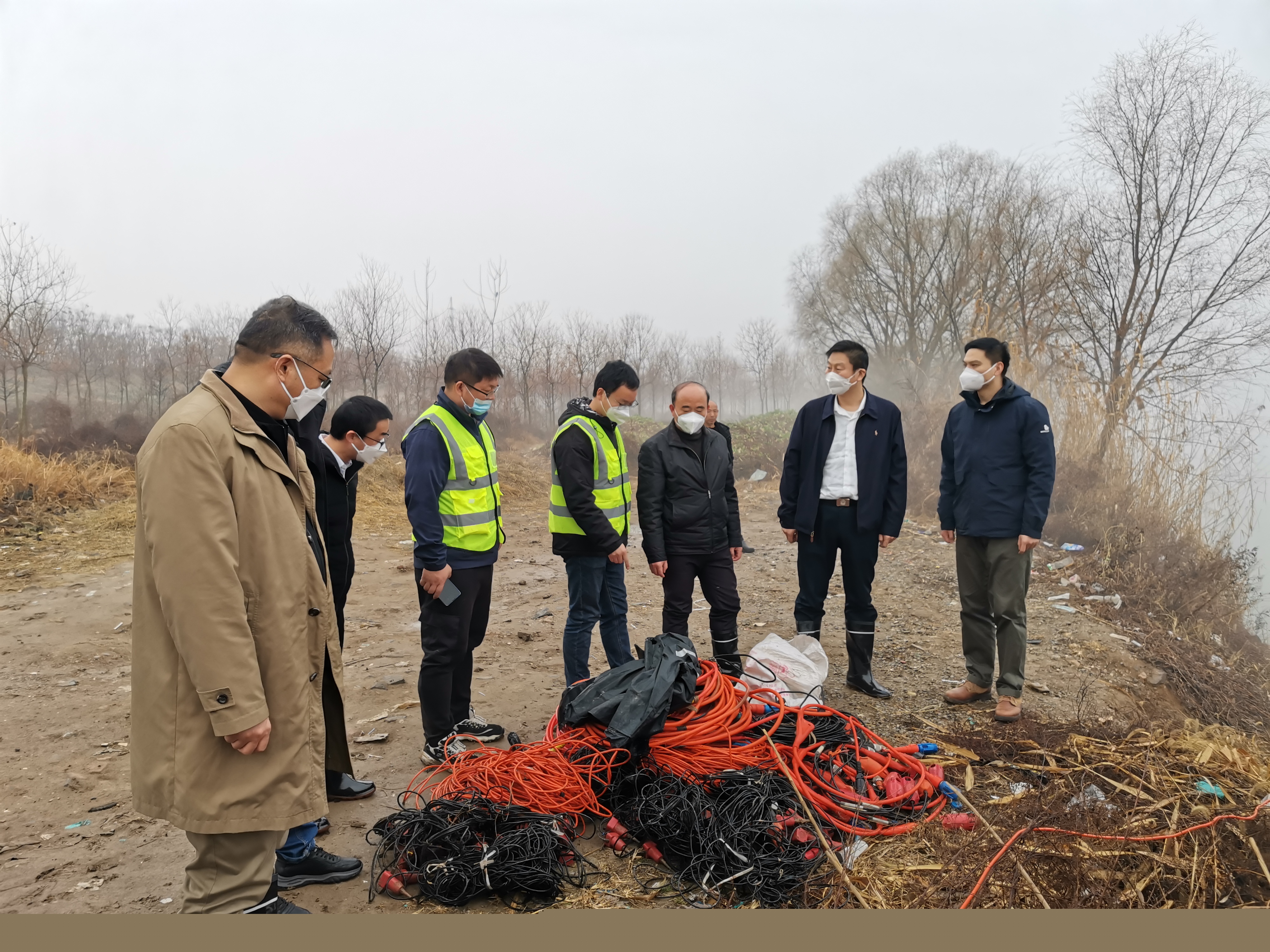张国锋一行直达野外采集现场,边察看海底电缆(水下地震检波器)敷设,边听取野外项目负责人项目进展情况的汇报。张国锋肯定了项目组正在进行的跨淮河海缆敷设安全防护,他指出,要统筹项目进展与安全生产的关系,尤其二维地震勘探方法涉及民爆器材,要做好民爆器材的出入库登记、现场包药下药以及起爆现场安全警戒管理,确保生产安全。