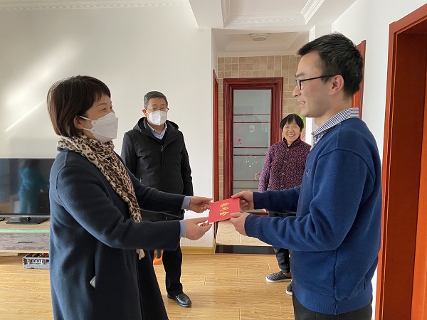 在困难党员郁磊家中,王永娟送上新春问候和节日慰问品、慰问金,并亲切询问了他的工作情况、家庭生活状况、家人身体状态等,仔细了解他目前生活上遇到的实际困难,为他出谋划策、加油打气。王永娟鼓励郁磊要保持积极乐观的生活态度,进一步坚定战胜困难的信心;同时嘱咐他在春节到来之际、在防范新冠病毒的重要时期,要加强防护措施,?;ず米约汉图胰说纳硖褰】?。