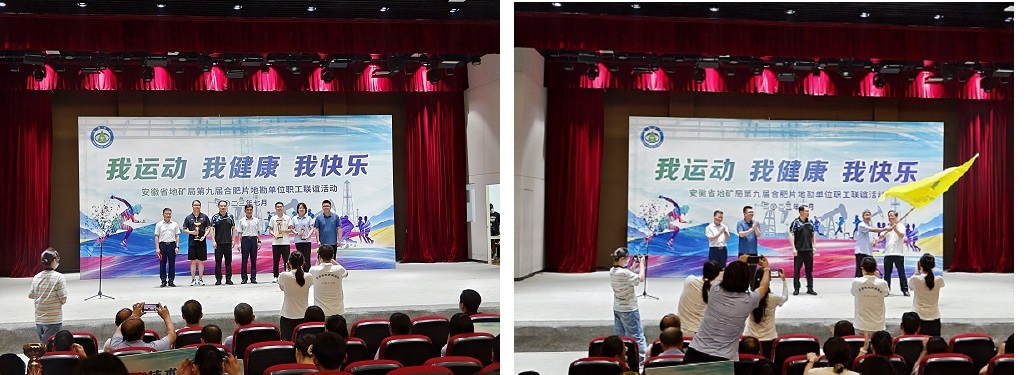 闭幕式上,按照省地矿局合肥片地勘单位文化体育精神,进行了会旗交接仪式,我院将与安徽省地质实验研究所共同主办第十届省地矿局合肥片地勘单位职工联谊活动。
