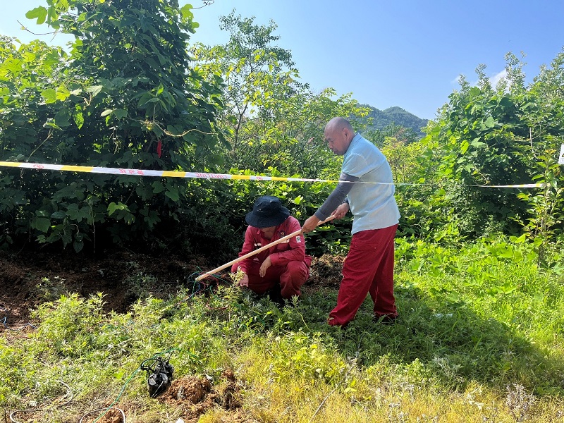 演练模拟了在复电阻率法施工过程中因电线老化破损发生的触电事故。项目组根据预定计划有序开展应急处置:发现呼救阶段,发现施工人员触电倒地,发现者立即通过对讲机呼救并告知中心站人员切断供电电源;脱离转移阶段,随即做好自身防护,用干燥的木棒挑开漏电电线,使触电者脱离危险源,其他应急救援队员用担架将伤者转移至安全环境;应急救护阶段,根据伤者伤情采取必要救护措施(心肺复苏),并拨打急救电话。演练全程秩序井然,配合默契。演练结束后,何家国进行总结点评,提出改进工作建议。