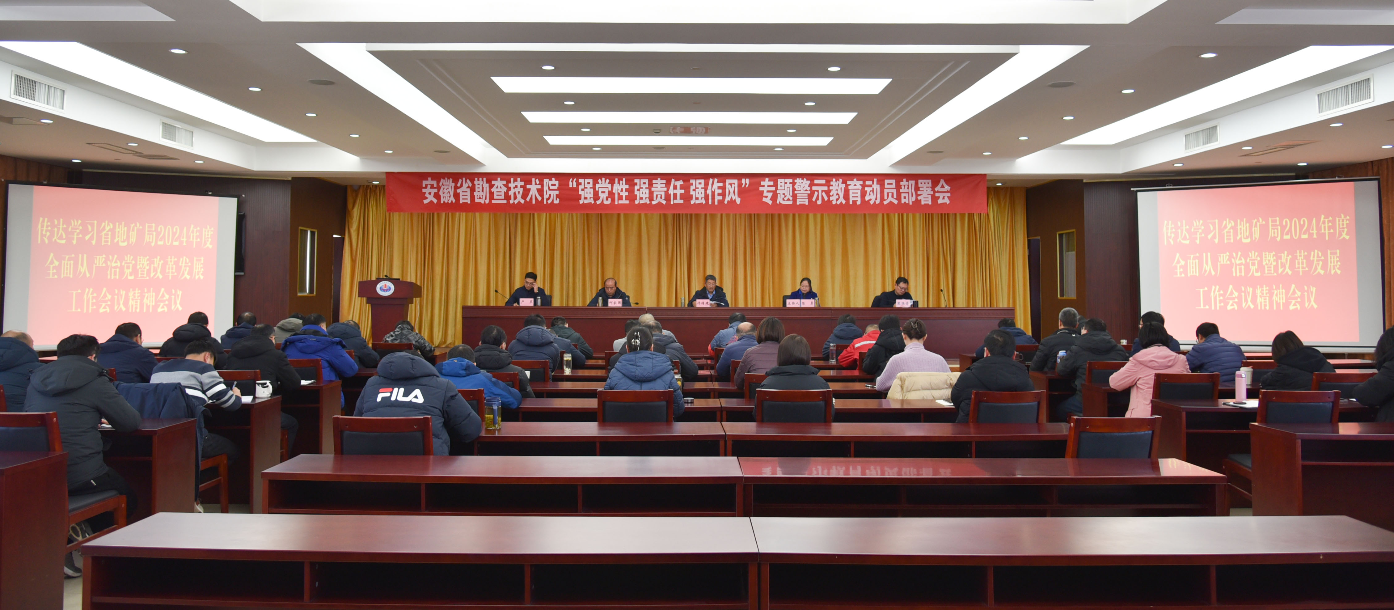 1月23日,我院召开“强党性 强责任 强作风”专题警示教育动员部署会。院领导、首席专家、全体中层干部参加会议。会议传达学习了安徽省地矿局2024年度全面从严治党暨改革发展工作会议精神及《安徽省地矿局党委关于开展“强党性 强责任 强作风”专题警示教育工作方案》。