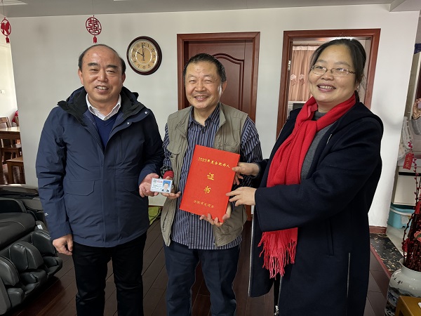为崔先文颁发“合肥好人”证书和“合肥通卡”