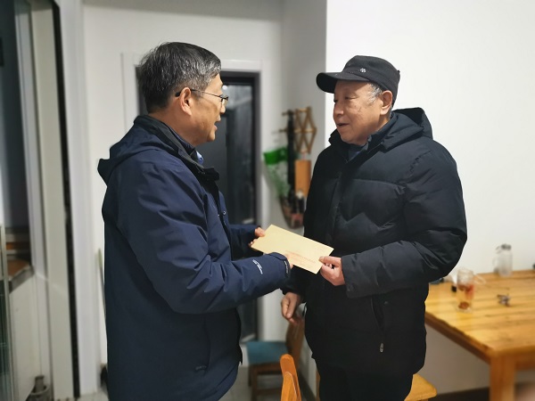 在离休干部刘杰山、谢仲春家中,院领导亲切询问他们的身体状况,并提前送上春节祝福。受院党委委托,离退休第三党支部书记汪海滨在上海看望了离休干部陈兆新。