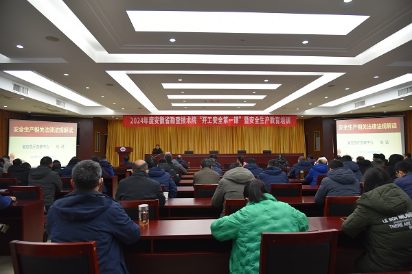 2月23日上午,我院开展“‘开工安全第一课’暨安全生产教育培训”,特邀省应急管理厅宣教中心徐进、瑶海区人社局缪力光两位专家前来授课。该院领导、机关科室及各勘查单位职工等90余人参加,院安全总监杨志成主持。