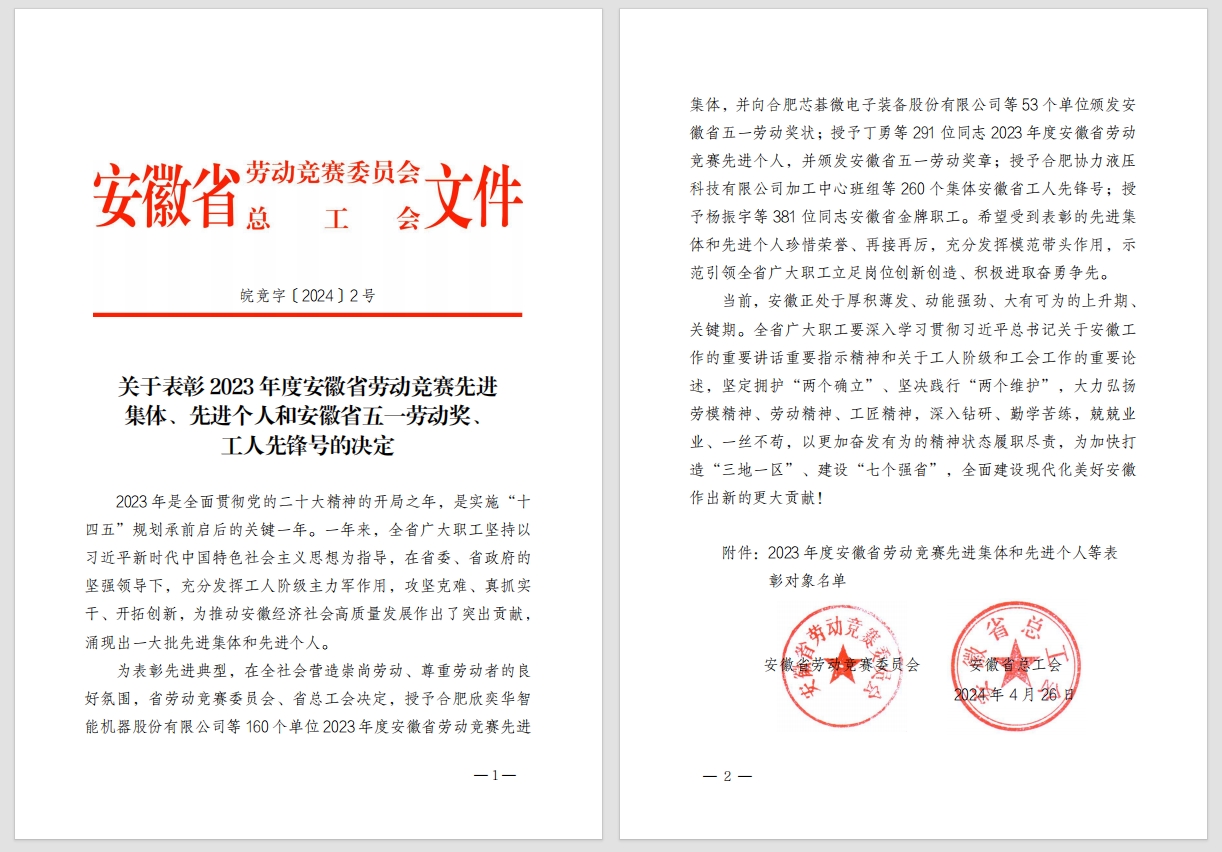 多年来,我院充分发挥工会组织作用,以技能素质提升为着眼点,以文化建设为主阵地,在院属各基层分会项目组、班组等深入开展创建“工人先锋号”活动,极大激发广大职工工作热情和活力,引导职工立足本职、爱岗敬业、甘于奉献,争当学习型、知识型、创新型职工。此次陈同刚被授予安徽省五一劳动奖章,综合物探分院《安徽省重要流域自然资源地表基质调查试点》项目组被授予安徽省工人先锋号,不仅对他们个人取得的优异成绩的肯定,也是我院为职工提供施展才华的舞台而结出硕果的体现,充分展现了我院在人才培养、科学研究、公益职能、社会服务等各方面事业取得了令人瞩目的成绩。目前已培养了1名安徽省先进工作者、8名安徽省五一劳动奖章获得者、3名全国行业技术能手、地震勘探分院获得“全国工人先锋号”称号。