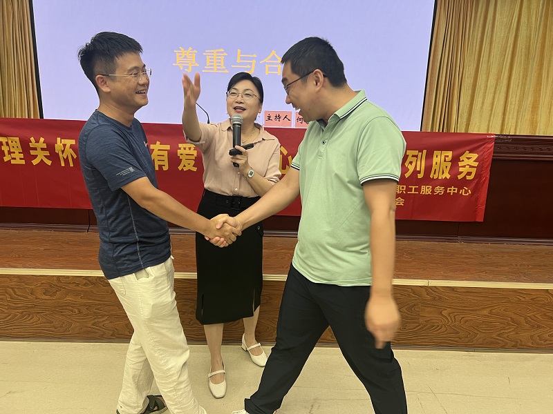 活动伊始,娄彦芝带领全体学员两两结对,以“拍拍操”“快速签字”两个小游戏暖场,围绕一个沟通心法、两把沟通钥匙等方面的内容,以互动体验、现场问答等方式,使大家了解职场沟通的心法,掌握职场沟通的方法,学习如何成为一个有方法、能成事的职场达人。在讲座结束后,并为全体参会人员做了放松减压赋能,帮助职工放松身心,缓解压力。