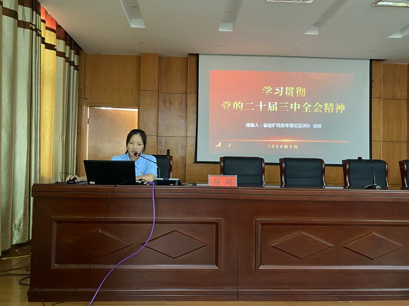 9月19日,我院职工、省地矿局青年理论宣讲队队员徐娟走进界首市市场监管局,以我院沙特地勘项目组事迹为主题进行宣讲,宣传贯彻党的二十届三中全会精神,弘扬科学家精神。