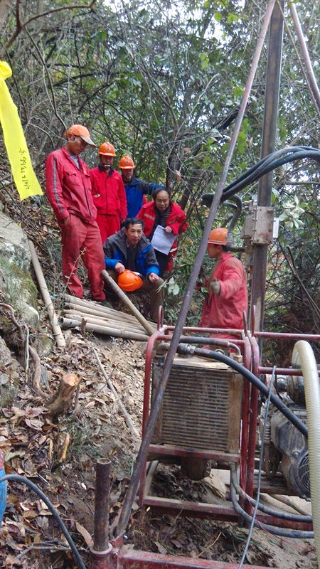 到达临安后,汪青松一行在地震分院负责人的陪同下深入野外工区一线了解勘查施工情况。汪青松一行先是驱车来到山顶观察工区地形,随后沿着崎岖山路徒步来到半山腰的1366.5∕L1012钻井现场查看钻井施工进度。汪青松向钻机施工人员送上春节的美好祝福,并同大家亲切交谈。他充分肯定了项目组成员吃苦耐劳的精神与顽强不息的斗志,向春节期间坚守工作岗位的同志们致以亲切慰问。纪委书记李东海表示,工区地形环境复杂,一路走来很是艰难,希望大家在努力干好工作的同时,时刻注意人身安全,同时做好林区防火相关工作,过一个平安祥和的春节。