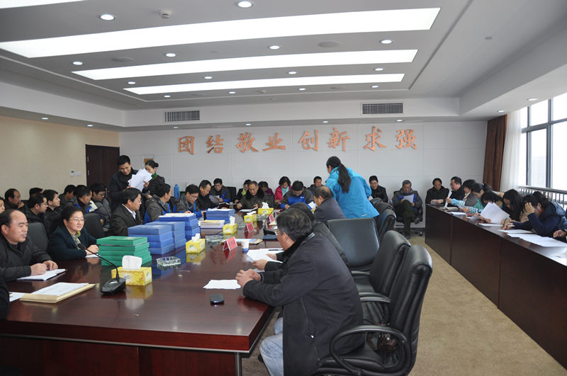 2月21日,省地质工会主席王宁川带领局双文明第一考核组莅临我院检查2013年度政治文明和精神文明建设工作。院领导班子全体成员出席汇报会。