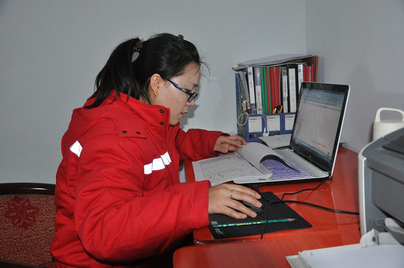 作为项目部50多人中的惟一女性,郑雪静的野外生活并不枯燥。同事们对这个“90后”女生照顾有加,把她当成了“宝贝疙瘩”。领导安排她担任室内资料管理员,负责检查核对野外施工班报记录。每天当测量、放线、钻井小组从野外归来,都会将记录班报交到她那里。郑雪静根据每条测线的施工要求,认真比对各小组的班报记录,查找出存在差错的地方并记录下来,反馈给施工组重新实地确认。如同文字排版校对一般,郑雪静的工作看似简单,却很关键。正是通过她的详细核对,施工组及时发现了部分钻井存在打钻深度不够的问题,避免了下药爆破形成“坑炮”的发生。