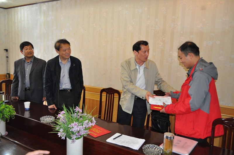 4月10上午,局纪委书记朱学文、省地质工会主席王宁川及女工部长徐建权在我院院长许传建的陪同下来到院蚌埠基地,看望慰问野外一线出险职工。