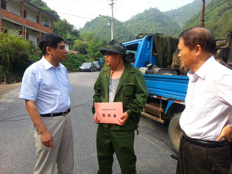 7月8日下午,施申轶副局长在省地质工会主席王宁川、局安工处处长张龙运、省地质工会副调研员杨昶明,我院许传建院长的陪同下,赴浙江临安工区亲切看望我院正在进行野外作业的干部职工,送去局领导的关怀和慰问。