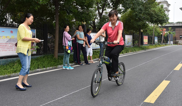 在掼蛋比赛如火如荼进行的同时,定点投篮和自行车慢骑也在操场上热火朝天地开展。这边定点投篮选手们兴致盎然,姿态各异,那边自行车慢骑选手们不慌不忙,稳步前进。现场氛围热烈,大家相互鼓励,一时间,操场上欢呼声,加油声,喝彩声,呐喊声,声声不断,喜气连连。